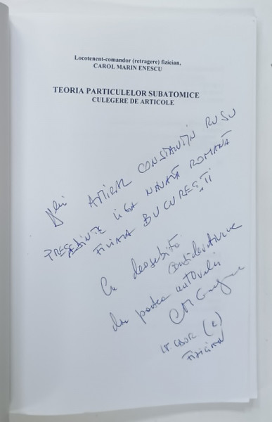 TEORIA PARTICULELOR SUBATOMICE , CULEGERE DE ARTICOLE de CAROL MARIN ENESCU , 2023 , DEDICATIE *