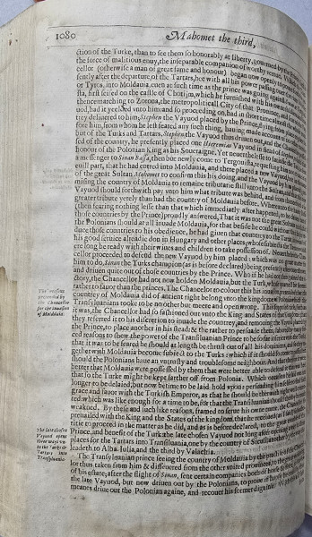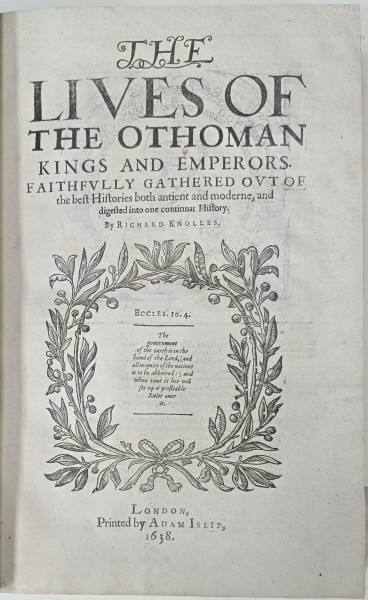 "ISTORIA GENERALA A TURCILOR, IMPREUNA CU VIATA SI CUCERIRILE SULTANILOR TURCI" , RICHARD KNOLLES, 1638.