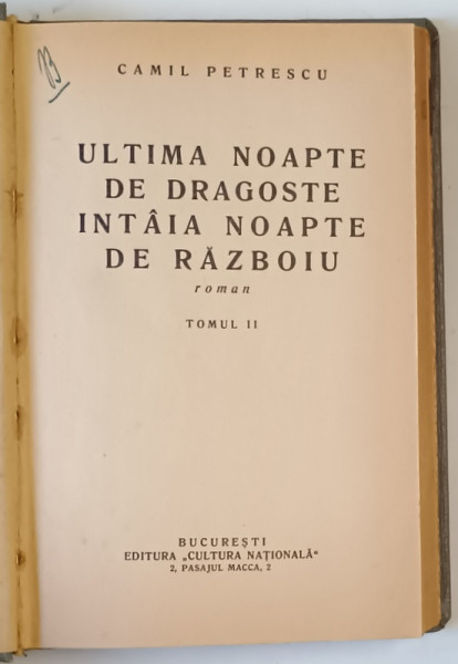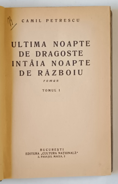 EDITURA CULTURA NATIONALA , VOL. I / 307 PAG. , VOL. II / 213 PAG., EDITIA I