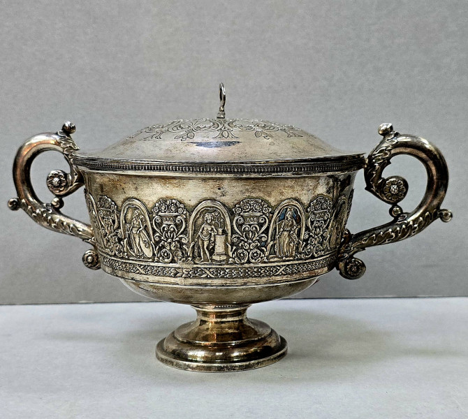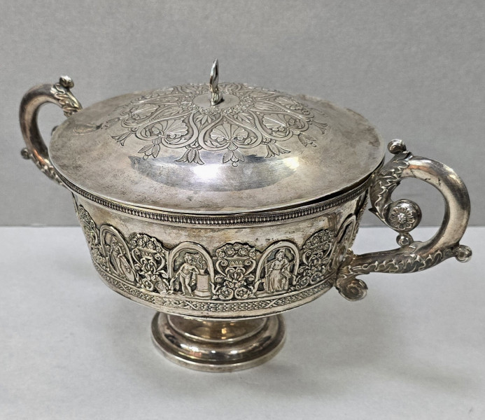 Vas din argint cu capac, decorat cu multiple scene, Rusia, 1838