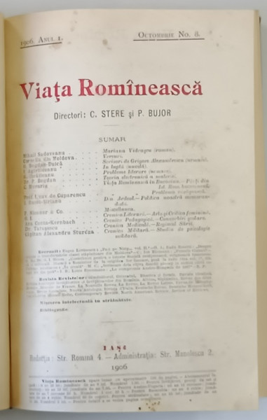 VIATA ROMANEASCA , ANUL I , VOLUMUL III , NUMERELE 7 - 10 , 1906 *COLEGAT DE 4 NUMERE