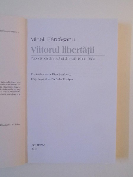 VIITORUL LIBERTATII , PUBLICISTICA DIN TARA SI DIN EXIL (1944-1963) de MIHAIL FARCASANU , 2013